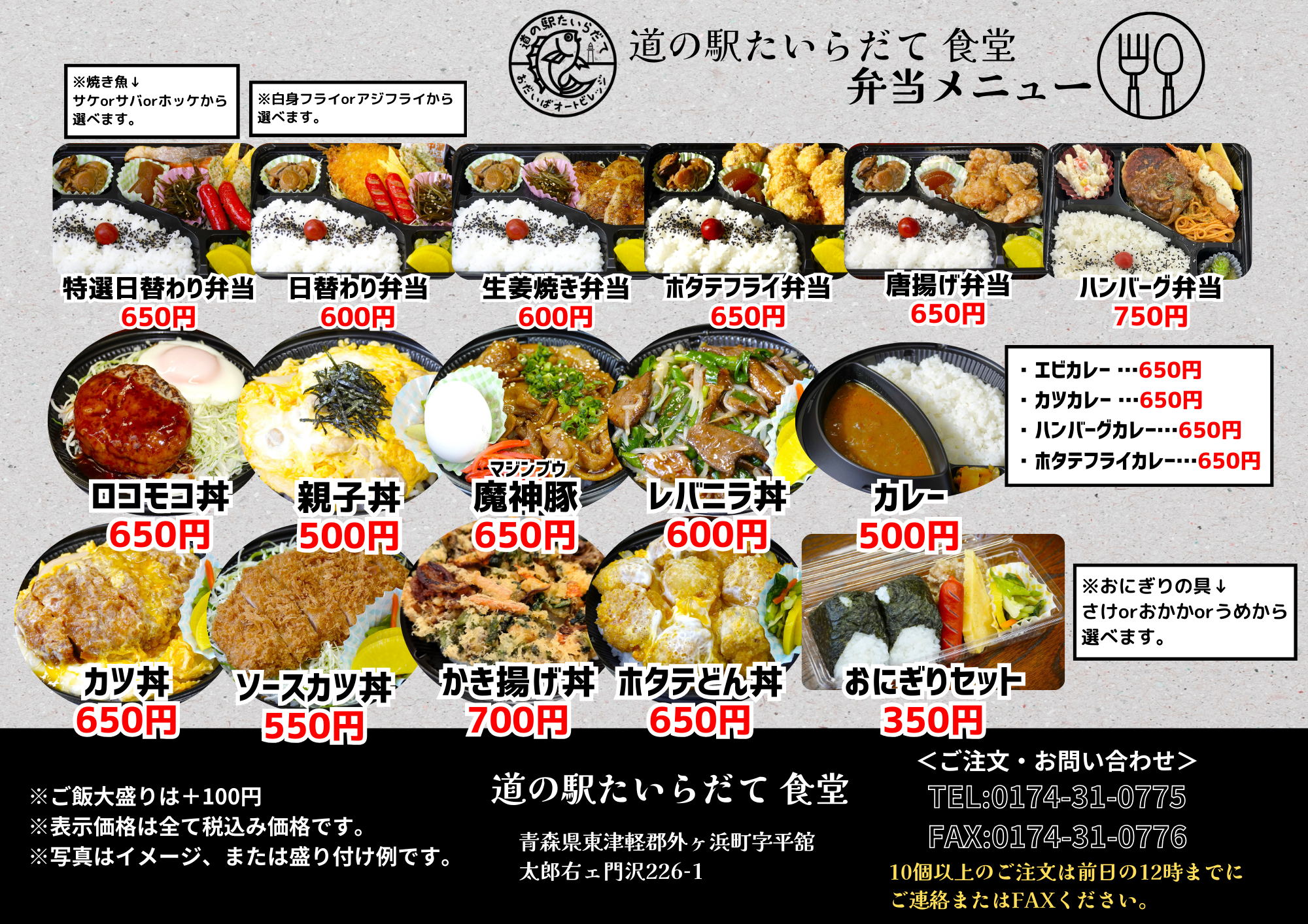 対象メニュー⇒ホタテフライ弁当、ホタテフライカレー、ホタテどん丼