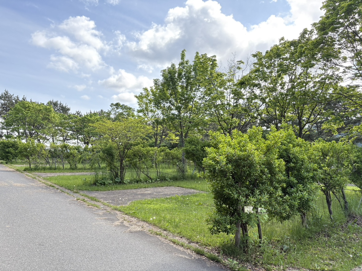 緑に囲まれたオートキャンプ場は全20区画。場内にはサニタリーハウス(水洗トイレ、炊事場)があるので女性やファミリーにも安心です。また、各サイト内には駐車スペース、焚き火用ブロックなども設置されているのでキャンプビギナーにもおすすめ。